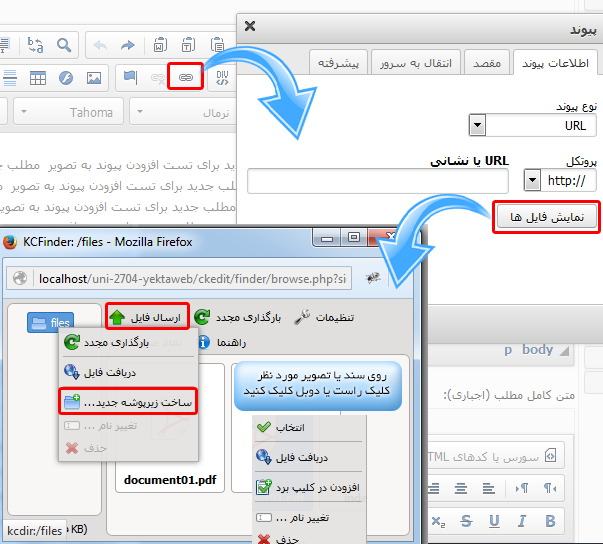 درون پوشه زیربخش شما ایجاد می شود نمایش می دهد. شما می توانید با کمک همین ابزار CKEditor یا ابزار مدیریت پوشه ها و فایل ها، پوشه های بیشتری